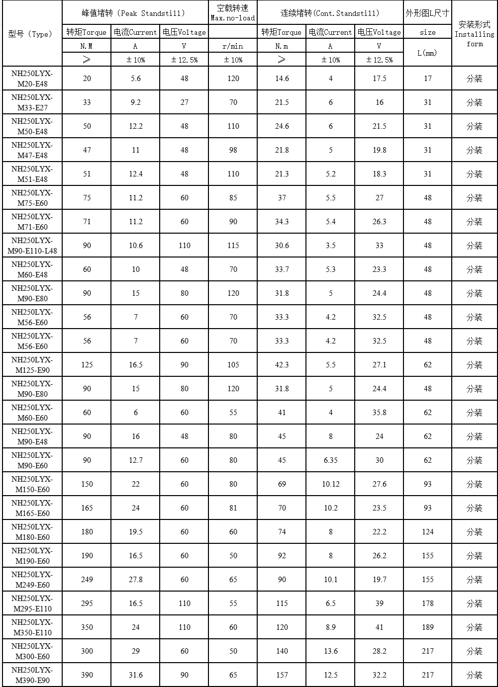 NH250LYX系列直流力矩電機